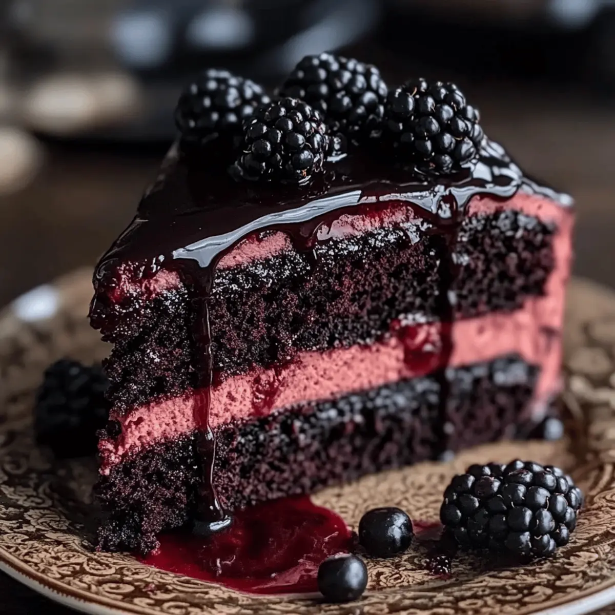 Decadence at your fingertips: This luxurious cake combines rich chocolate with a tart blackberry filling, offering a unique flavor explosion that will please any palate.