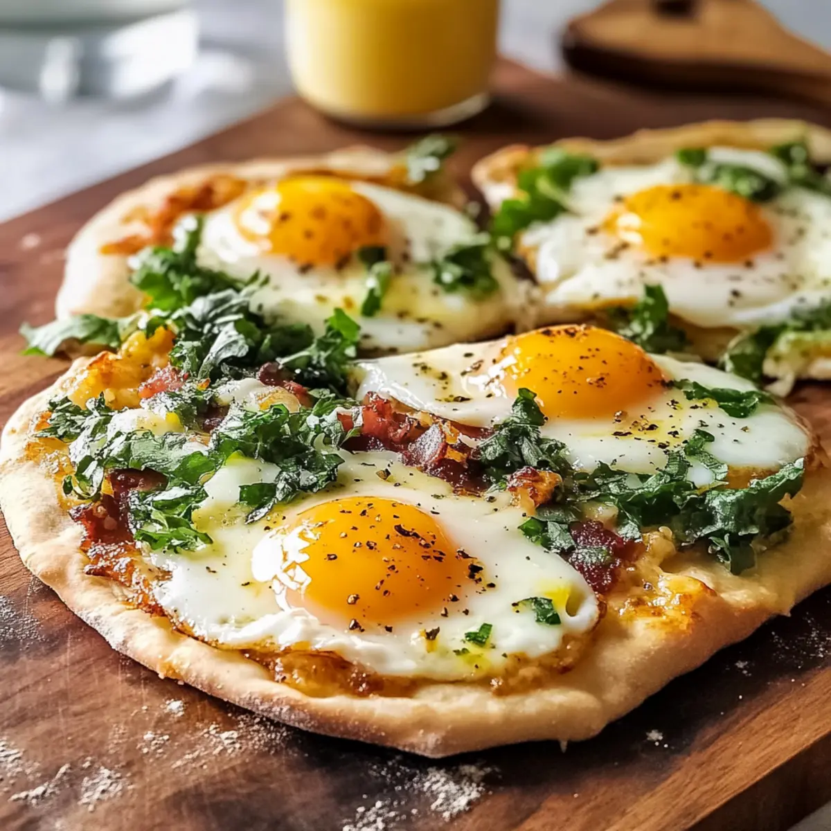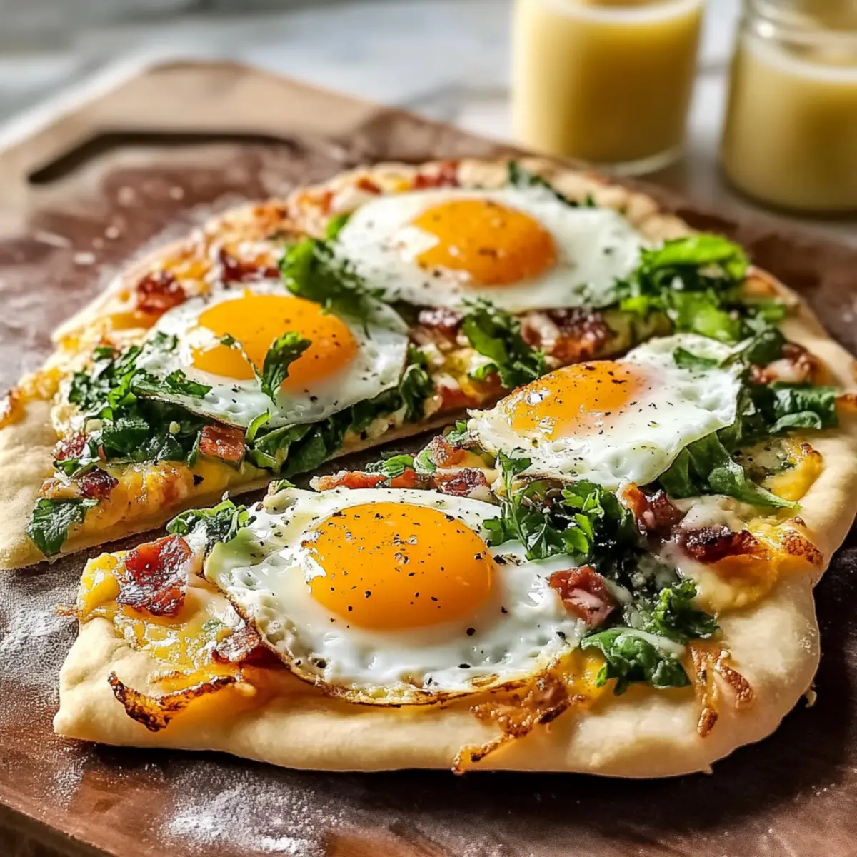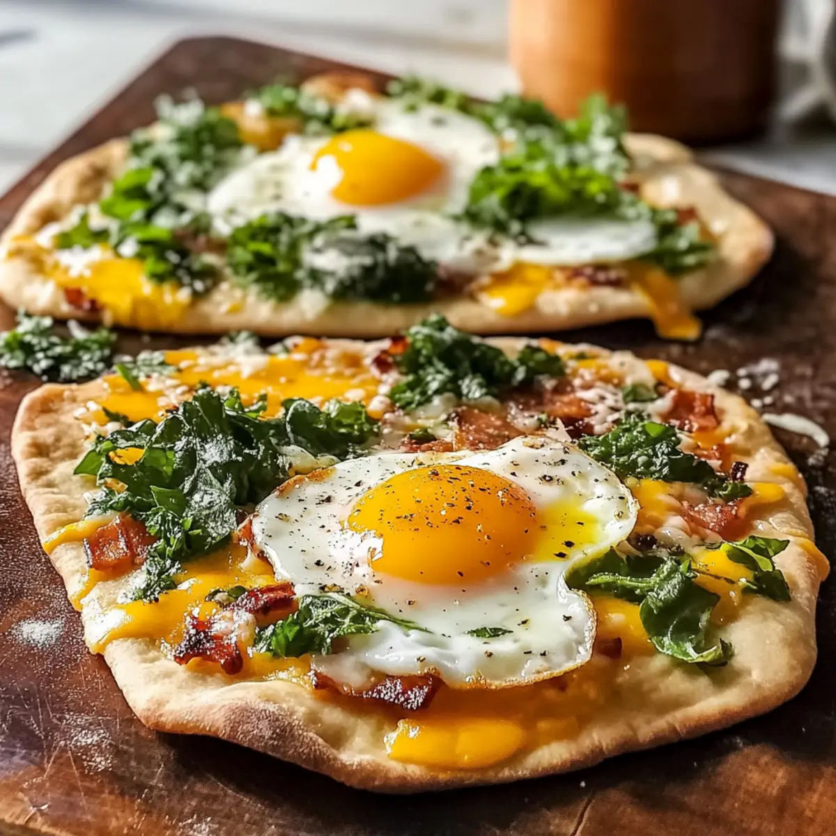 These Breakfast Flatbreads are perfect for meal prep enthusiasts! You can prepare the toppings—like chopped greens, cooked bacon, and shredded cheese—up to 3 days in advance. Simply store them in airtight containers in the refrigerator to maintain freshness. For the flatbreads, you can assemble them without the eggs and store them covered in the fridge for up to 24 hours. When you’re ready to enjoy, just crack the eggs on top, season, and bake as directed. This way, your Breakfast Flatbread will be just as delicious, ensuring a quick and satisfying morning meal is only minutes away!