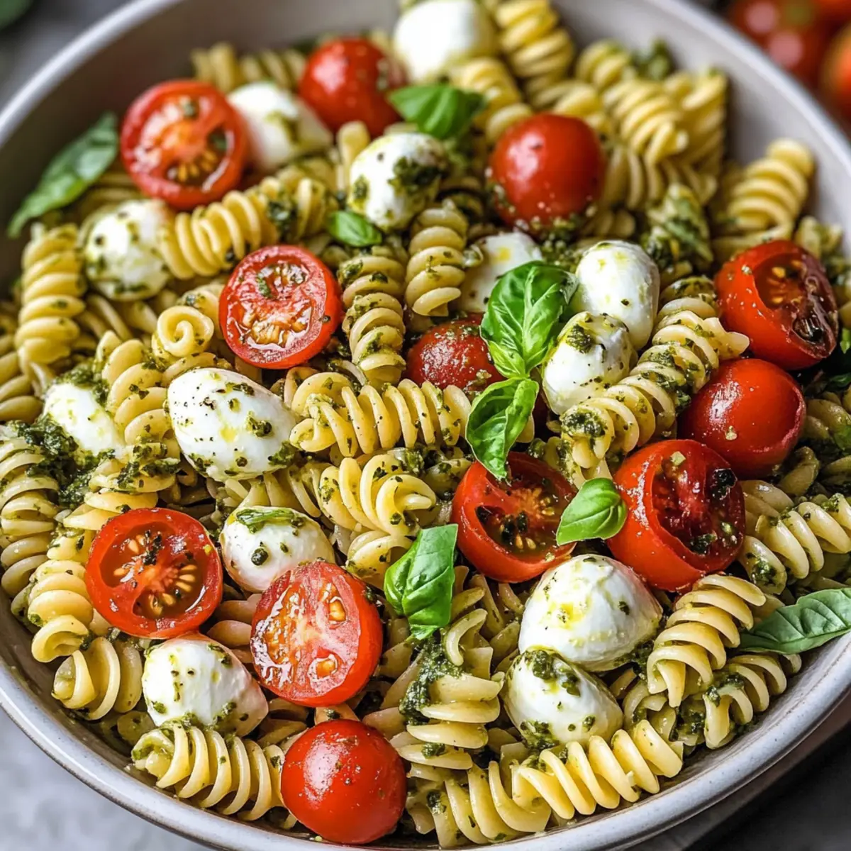 - Flavorful Pesto: Mixing in a spoonful of pesto can introduce a rich, herby flavor that takes your Caprese Pasta Salad to a new level. Trust me; this addition makes a world of difference!