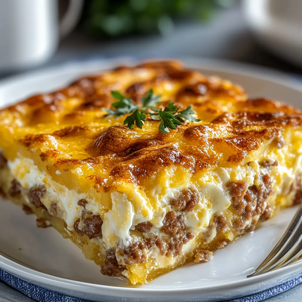 Sausage, Egg, and Cream Cheese Hashbrown Casserole Delight