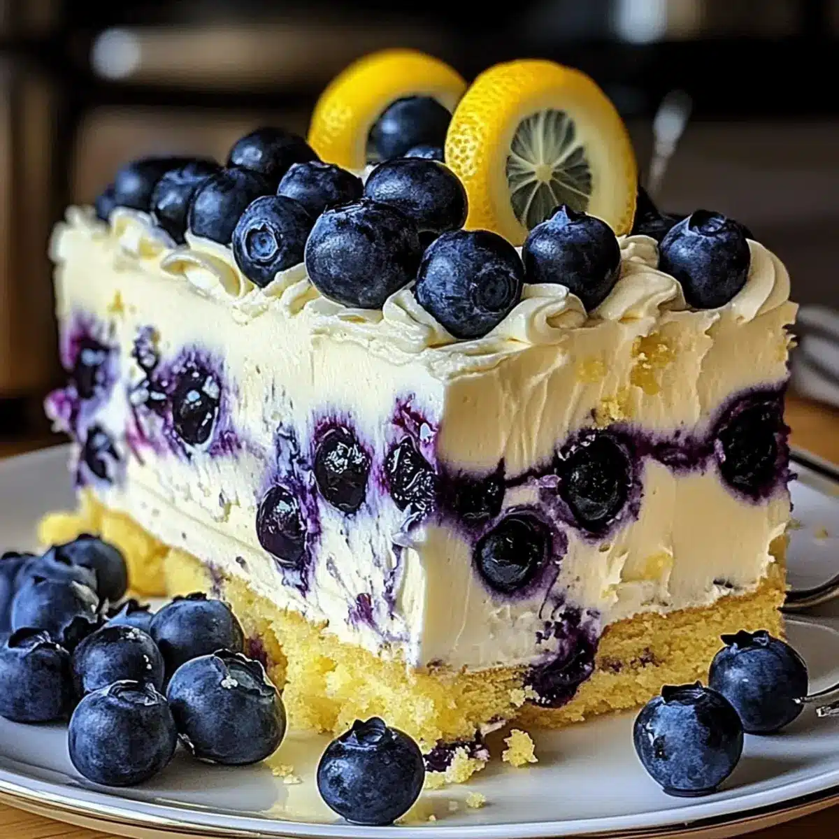 Delight in No-Bake Lemon Dazzling Blueberry Cream Cake