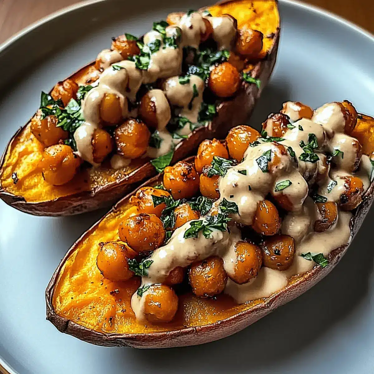 Sweet Potatoes with Tahini Butter Chickpeas for Cozy Nights