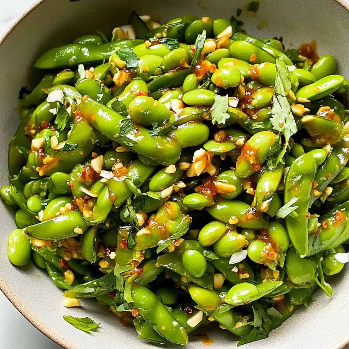 - Rinse the fresh snap peas under cool water and pat them dry. Slice them diagonally to enhance their shape. In a mixing bowl, combine the snap peas, blanched edamame, chopped cilantro, and sliced scallions.