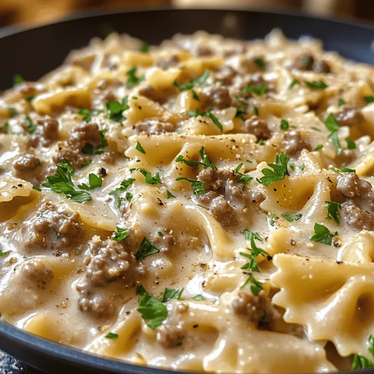 Comfort Food at its finest: Creamy Parmesan Garlic Beef Bowtie Pasta embraces all that is cozy and satisfying, making it a perfect fit for any family dinner. Quick and Easy to prepare, you can have dinner on the table in under 30 minutes, giving you more time to enjoy those family moments. Flavor Explosion from the rich garlic cream sauce and seasoned beef provides a robust taste that everyone will love. Versatile Options allow for ingredient swaps, whether you’re looking to lighten it up with ground turkey or add vibrant veggies for extra nutrition. Great for Leftovers, this dish reheats beautifully, ensuring no deliciousness goes to waste! Enjoy a comforting meal tonight and check out other favorites like Healthy Garlic Parmesan and Garlic Butter Beef to keep the good vibes flowing.