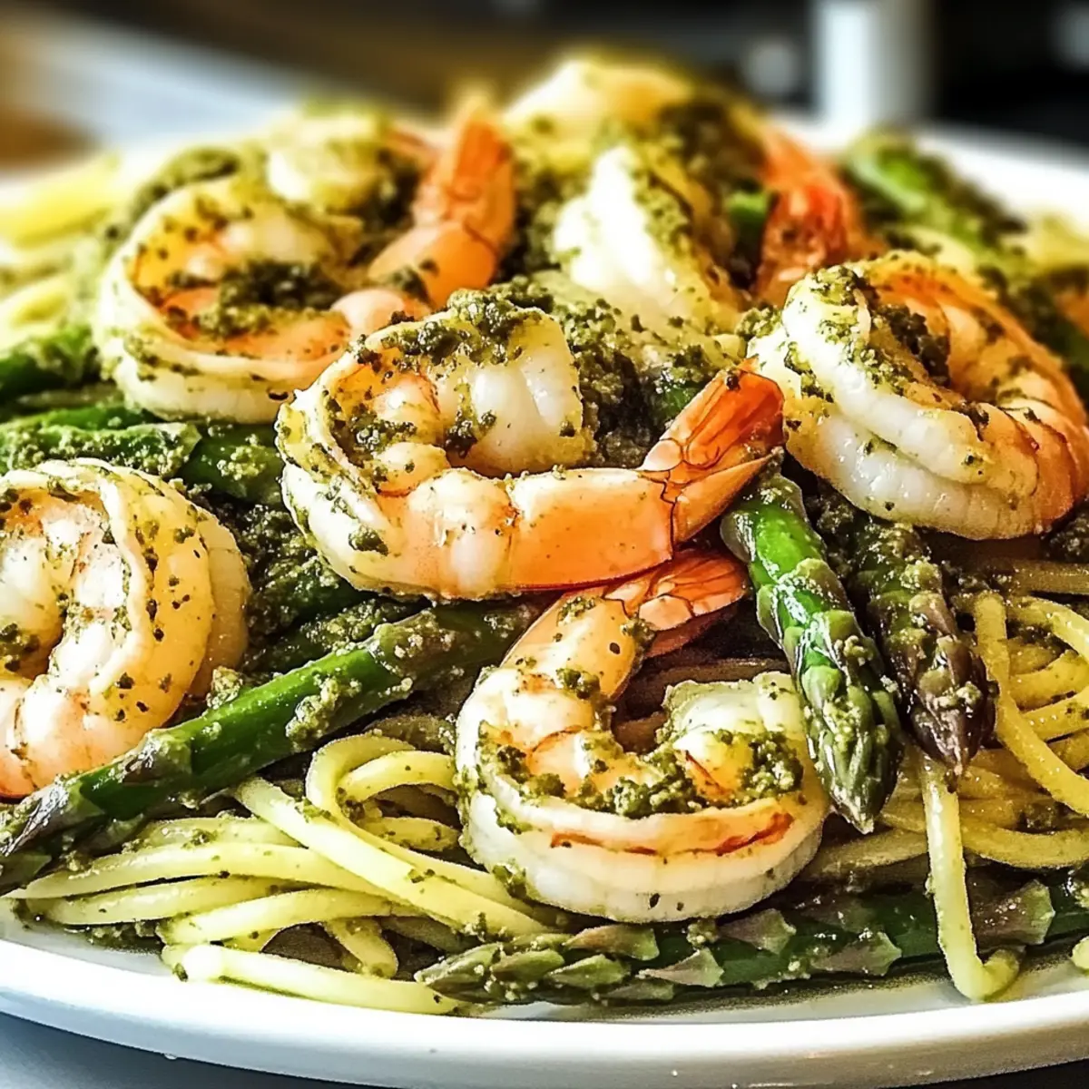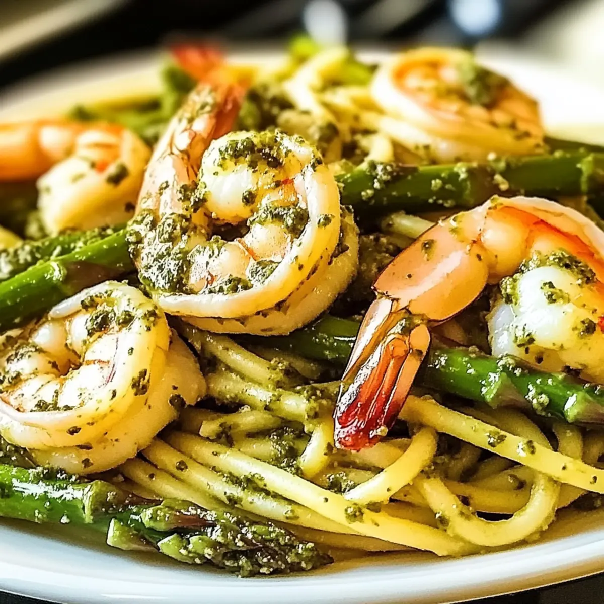 Crisp Asparagus: Sauté asparagus until vibrant green and tender-crisp to maintain a satisfying crunch, adding texture to your Creamy Pesto Shrimp Asparagus Pasta.