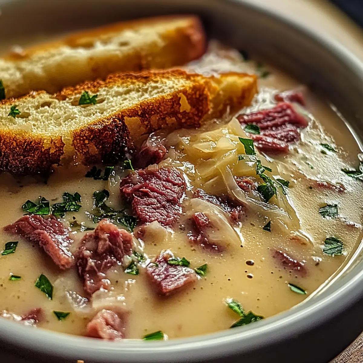 Embrace the comforting warmth of this Creamy Reuben Soup and savor every spoonful of its rich flavors!