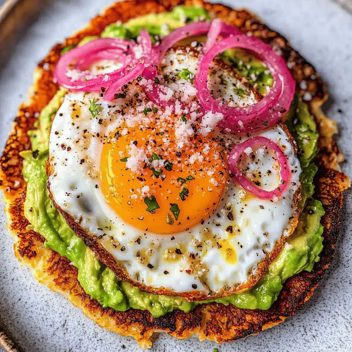 These Crispy Feta Fried Eggs are perfect for busy home cooks looking to save time during hectic mornings! You can prepare the crumbled feta and smashed avocado up to 24 hours in advance, ensuring they stay fresh in the refrigerator (in airtight containers). Additionally, if you’re planning to serve pickled onions, they can be made ahead and stored for up to 3 days. When you’re ready to enjoy your meal, simply reheat the feta in a skillet until crispy, then crack the egg directly onto it, and cook to your desired doneness. This way, you’ll have a delicious, satisfying breakfast ready in just minutes!