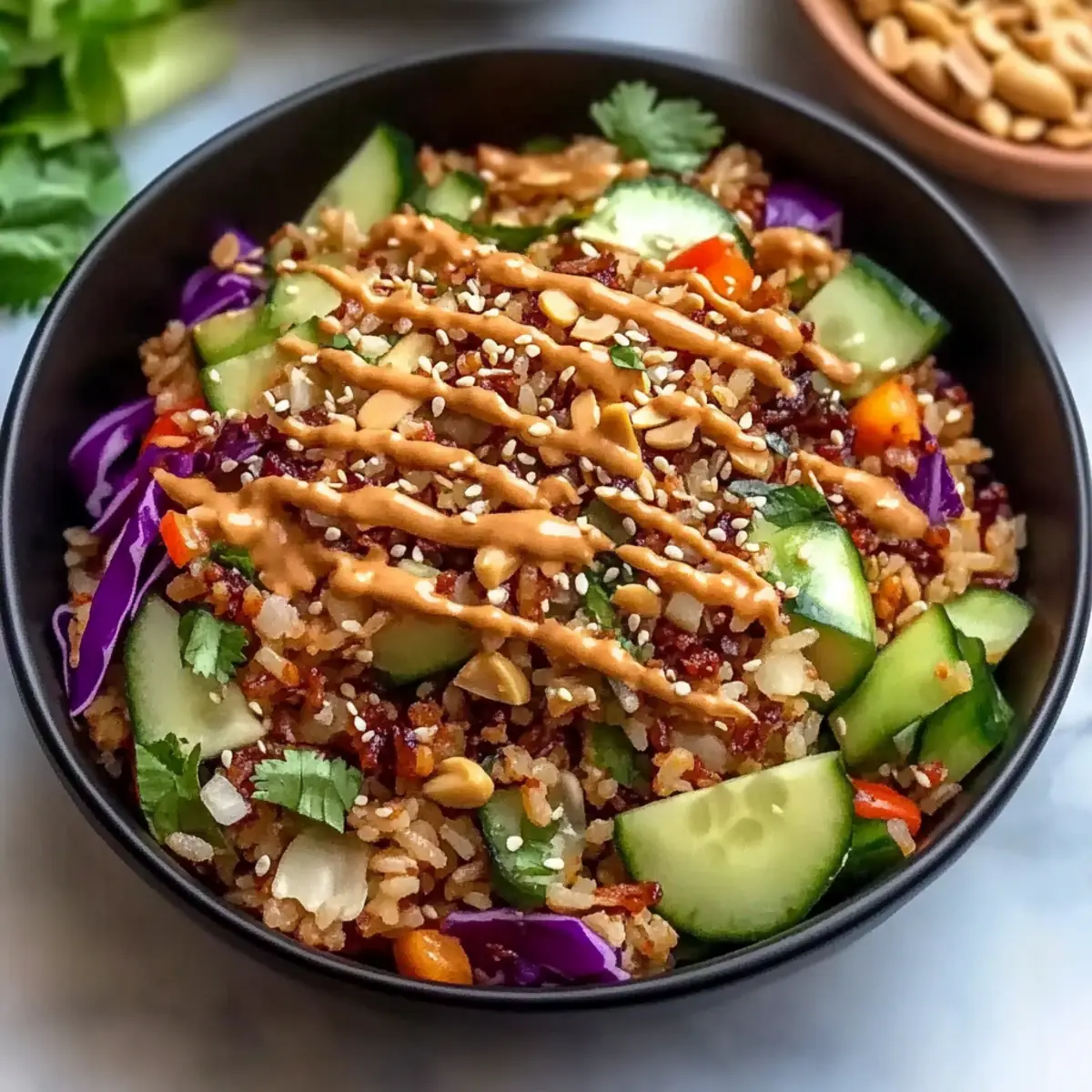 Deliciously Unique: This Crispy Rice Salad with Peanut Sesame Dressing combines crunchy rice clumps with vibrant vegetables, offering an explosion of flavor and texture that’s hard to resist.