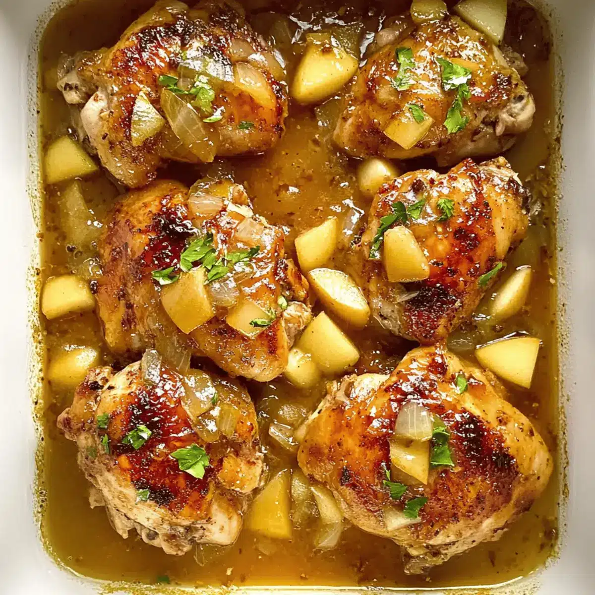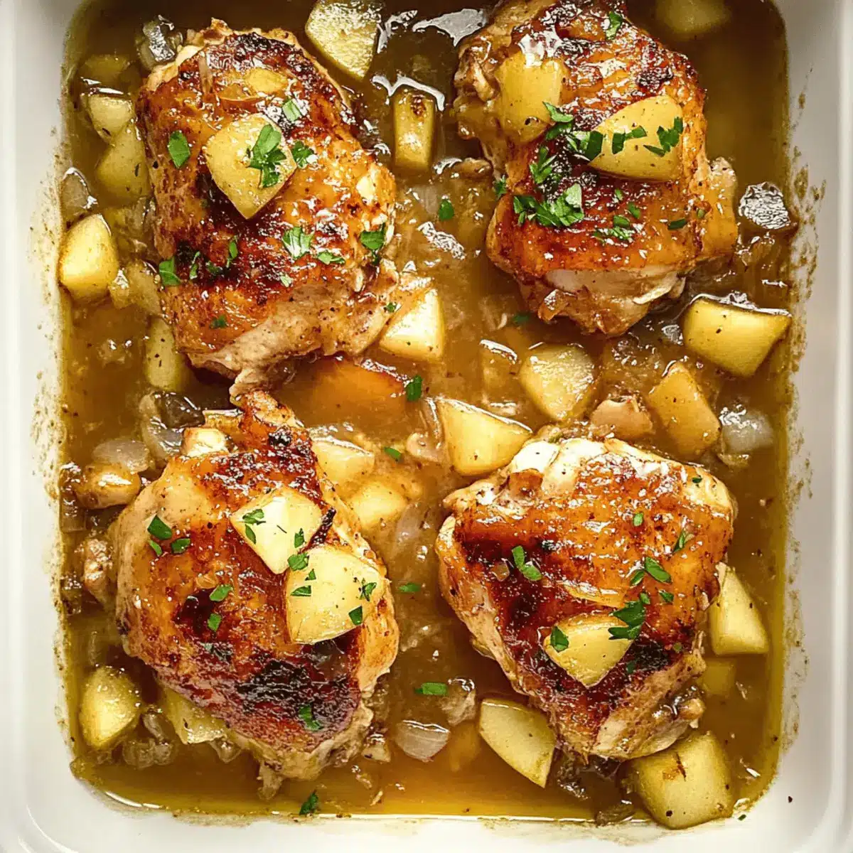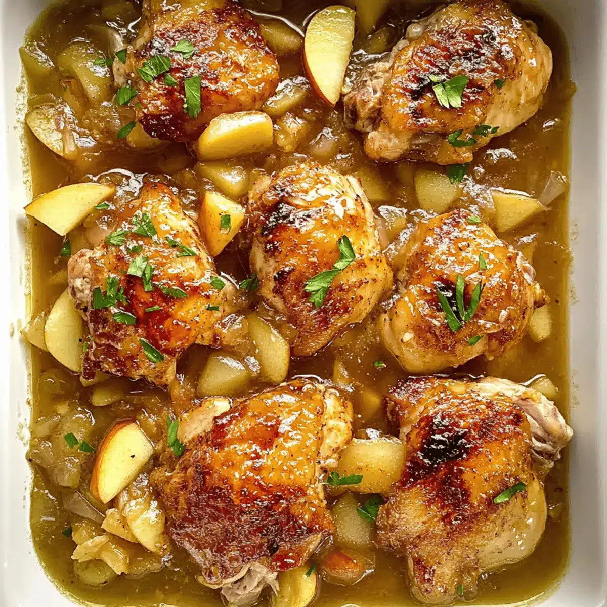 - Once done, shred chicken if desired and ladle sauce over the chicken and apples before serving.