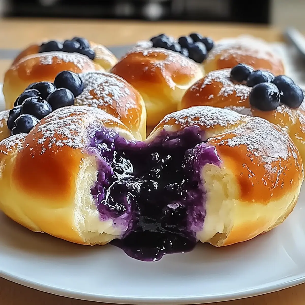 Carefully spoon the cheesecake filling into the indents of each bun, followed by a dollop of blueberry compote. If desired, sprinkle a crumble topping over each filled bun for added texture and flavor. This assembly creates the delightful layers that will shine once baked.