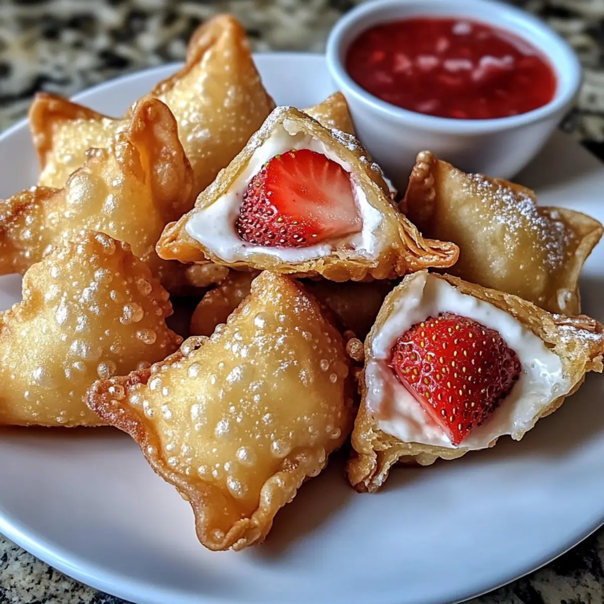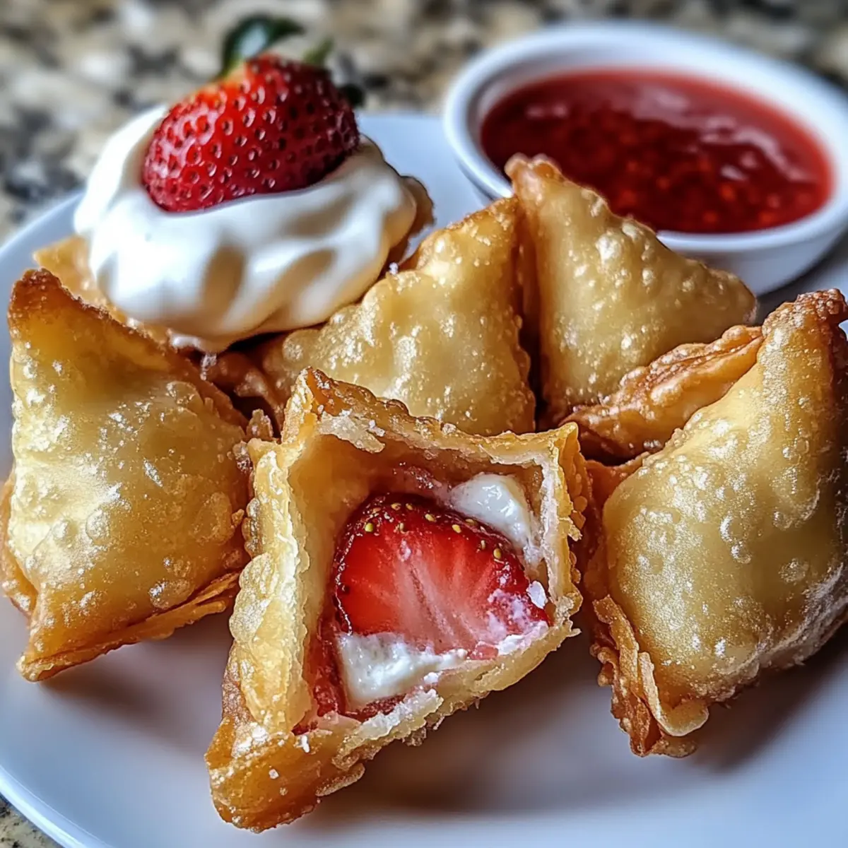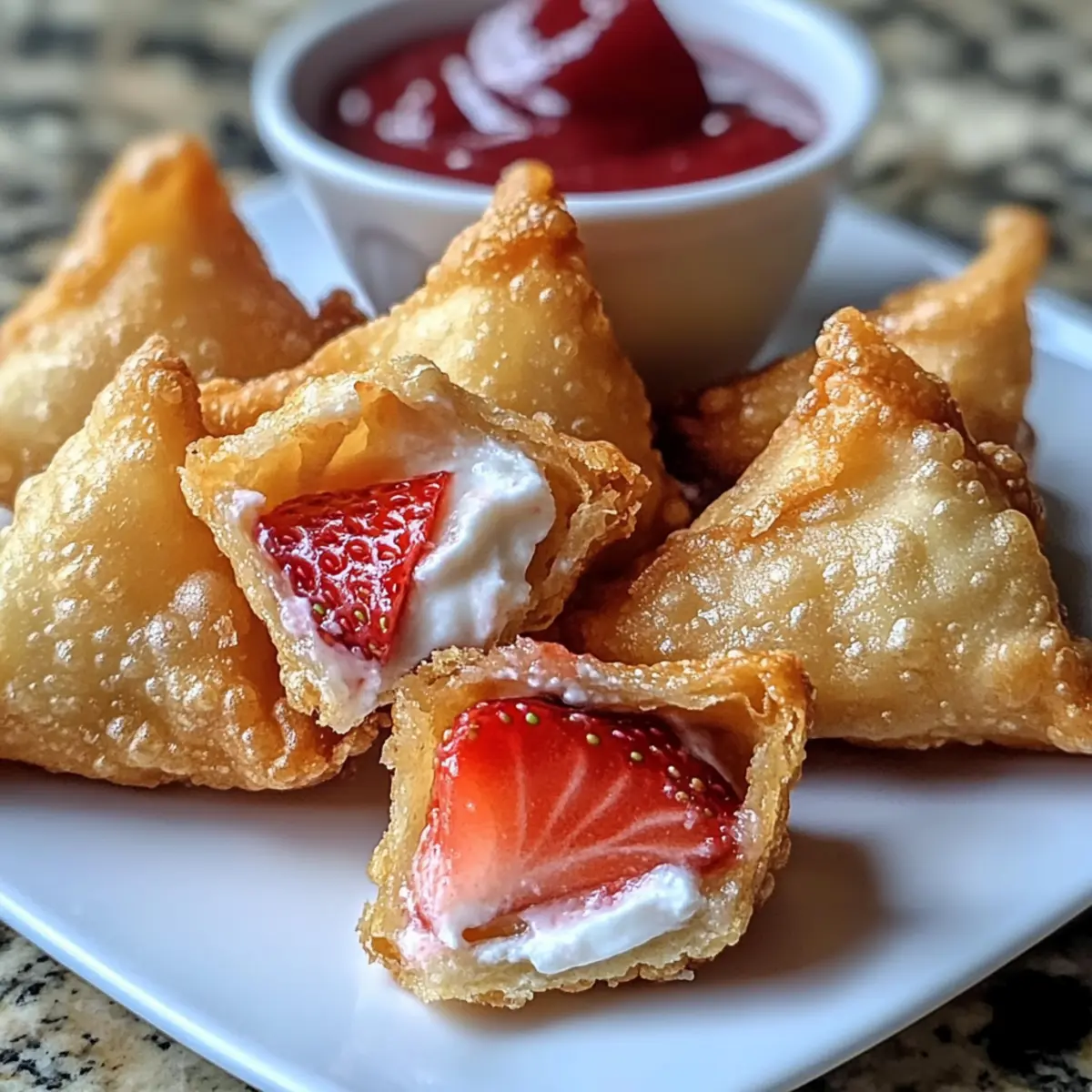Deep-Fried Strawberry Cheesecake Stuffed Wonton Bites Delight