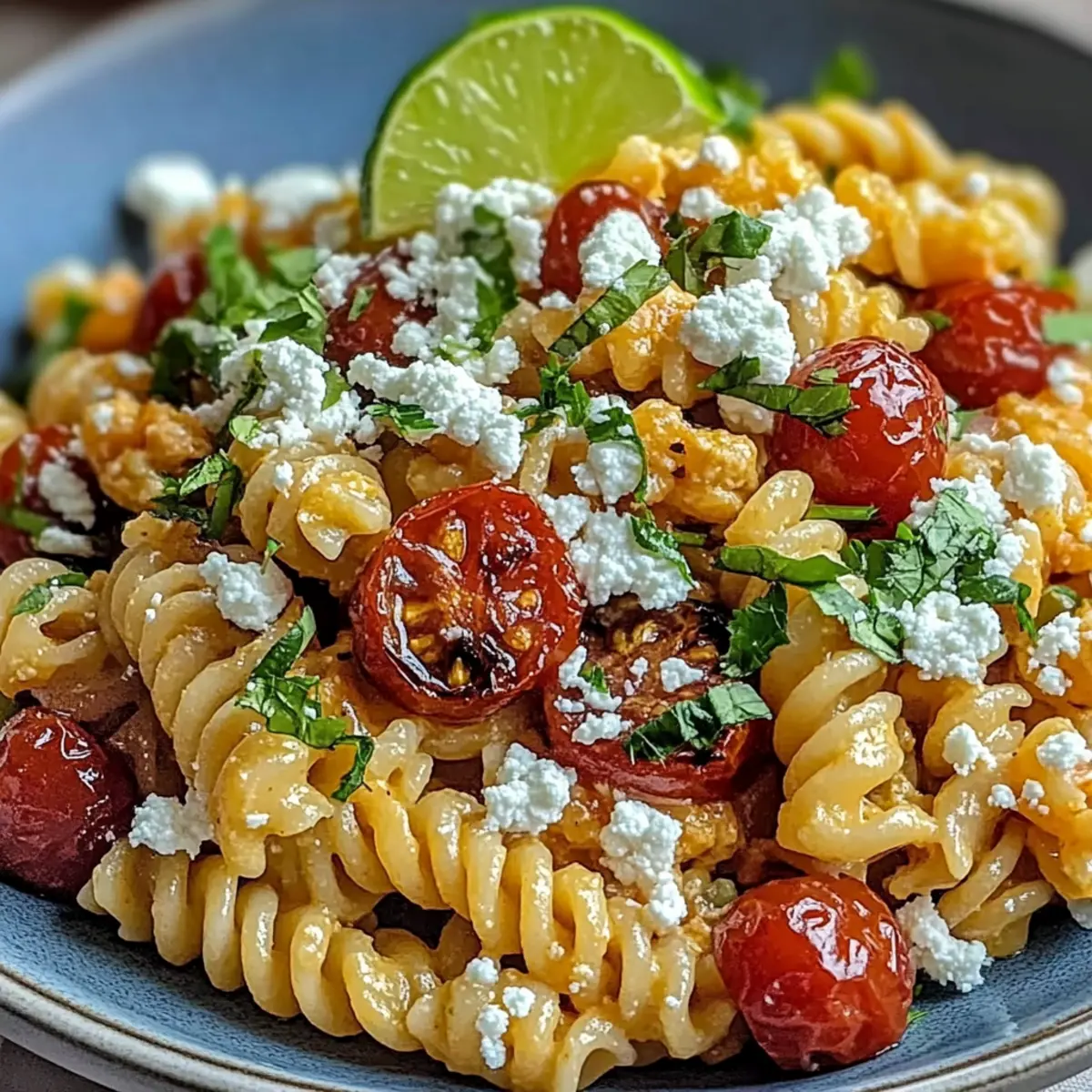- Combine Ingredients: Add pasta and corn to the dressing. Toss in tomatoes, onion, cilantro, jalapeño, and Cotija. Mix gently.