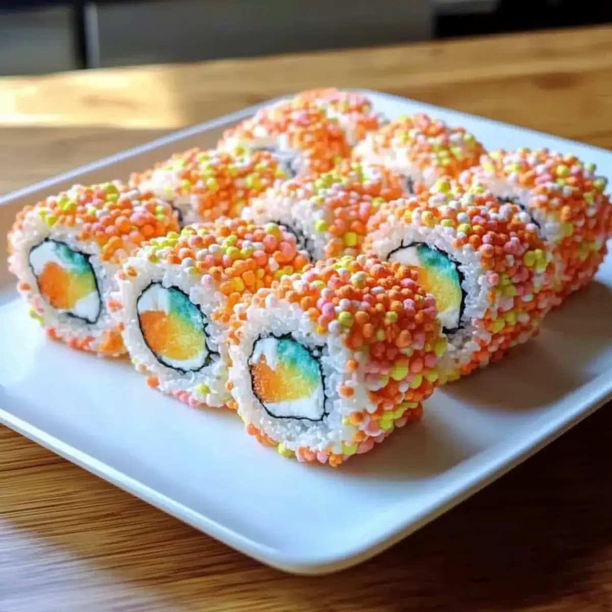 Mini Rainbow Cupcakes: A whimsical yet delightful addition to your dessert table, these cupcakes echo the cheerful colors by mirroring the playful spirit of the sushi.