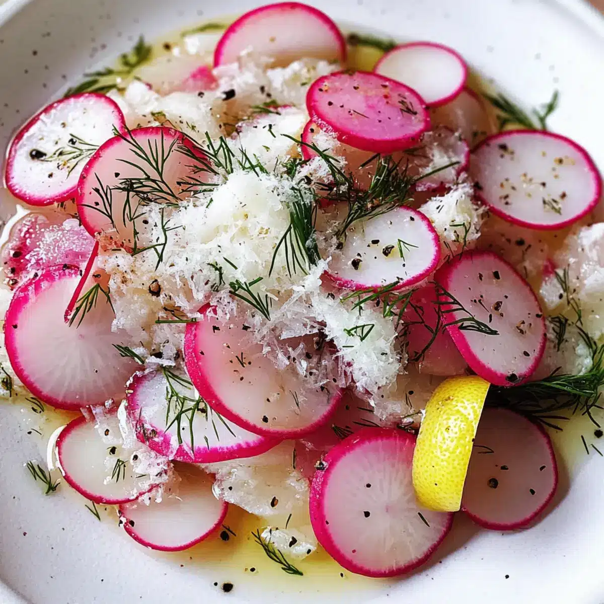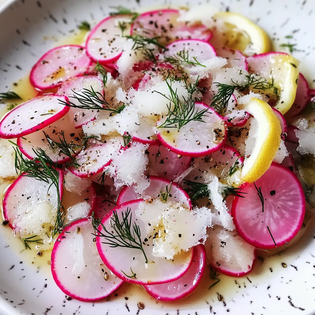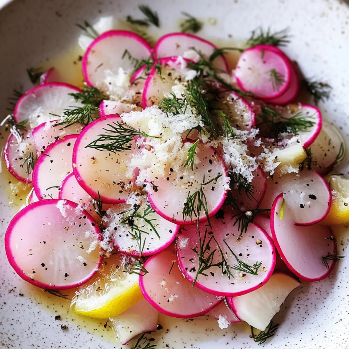 To elevate your Gordon Ramsay Radish Salad, finish with a sprinkle of lemon zest, additional grated Parmesan, a few extra torn dill sprigs, and freshly cracked black pepper. This final touch adds a burst of flavor and fragrance. Serve immediately to savor the fresh and vibrant crunch of your delightful salad.