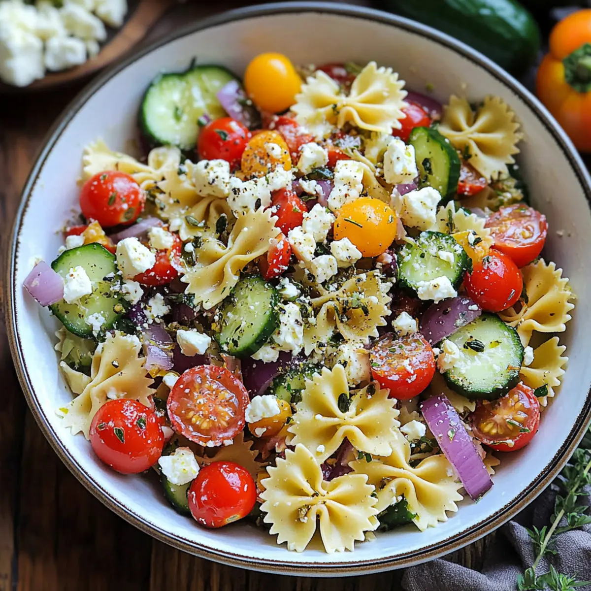 Imagine a bright, sunny day filled with laughter, friends, and delicious food—your Greek Pasta Salad is the perfect centerpiece!