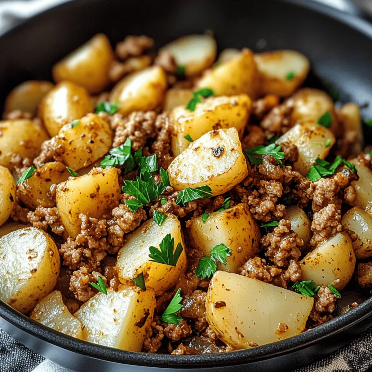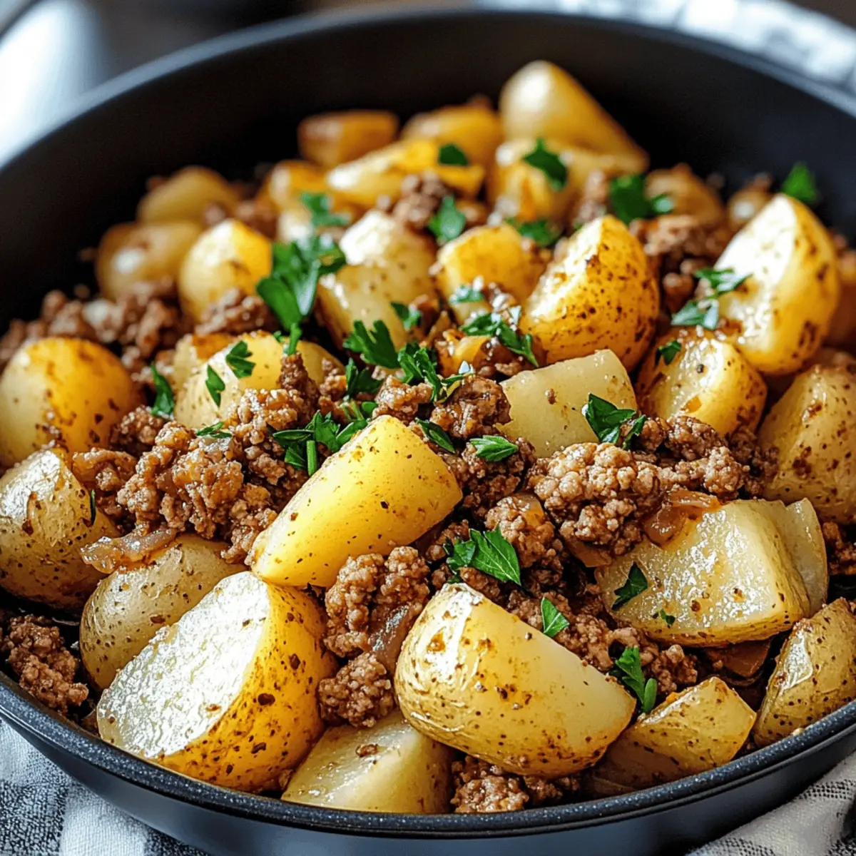After cooking, remove your Ground Turkey with Potatoes from heat and stir in a handful of freshly chopped parsley for a burst of color and freshness. Spoon the savory mixture into bowls while still hot, and feel free to serve with a side of crusty bread or a green salad to complete the meal.