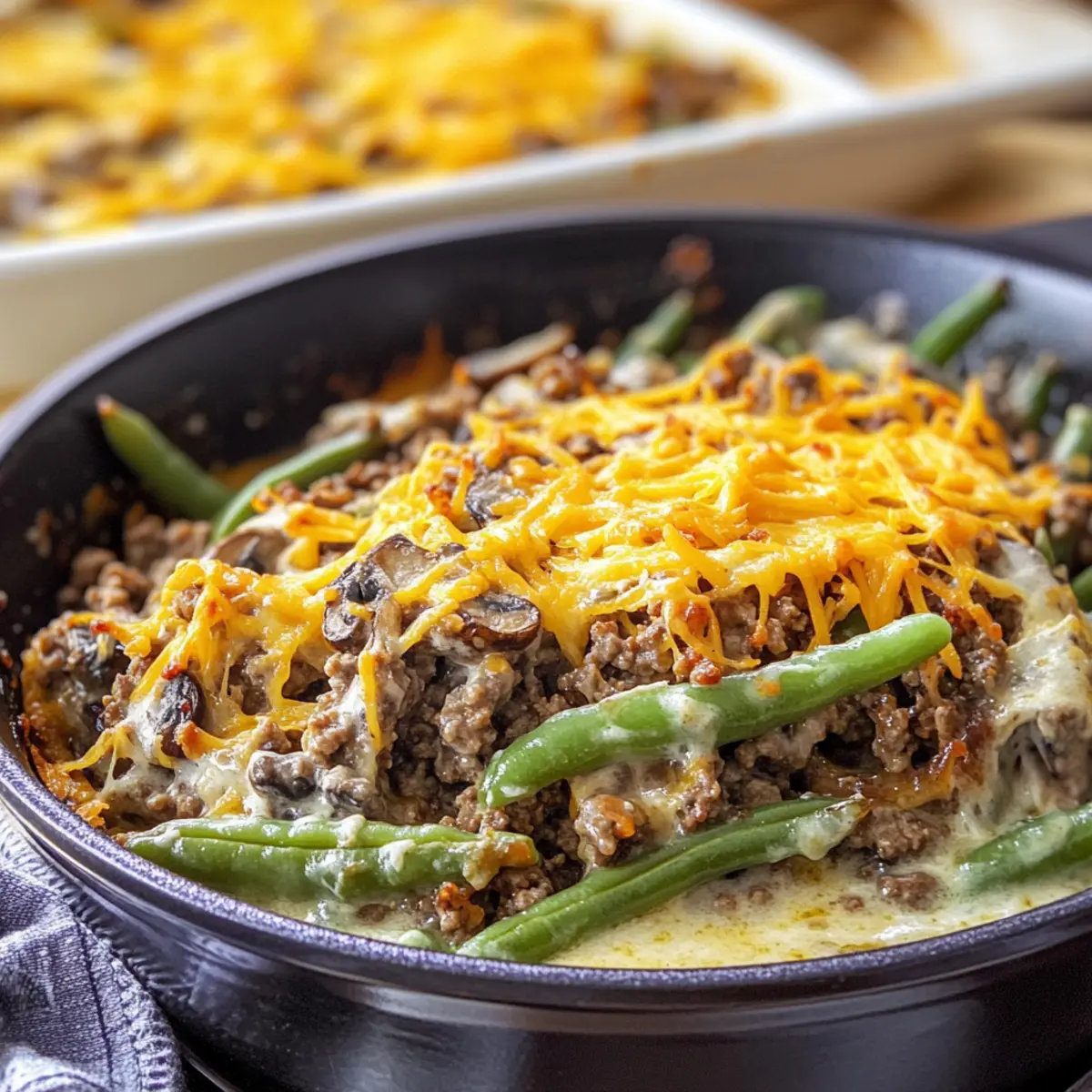 Hearty Comfort: This Hamburger Green Bean Casserole with Mushrooms is the ultimate choice for those seeking a delicious, filling meal without sacrificing flavor. One-Pan Wonder: Simplify your weeknight cooking with this effortless dish that only requires one pan! Healthy Twist: It cleverly combines low-carb, keto-friendly ingredients, making it a guilt-free comfort food favorite. Time-Saver: With just 25 minutes of prep and cooking time, it’s perfect for busy lifestyles. Crowd-Pleasing Flavor: The blend of creamy sauce, savory beef, and earthy mushrooms ensures everyone at your table will be asking for seconds. For more flavorful dishes, check out my Chicken Bacon Casserole or Spicy Southern Casserole!