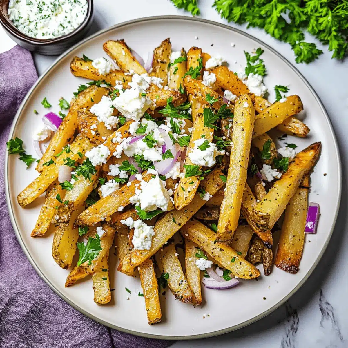 Crispy Homemade Greek Fries with Herb-Feta Goodness