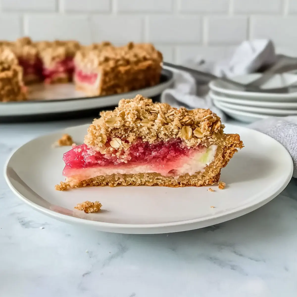 Satisfying texture: The crumbly oat crust adds a delightful crunch, making each bite a unique experience. You’ll love the way it contrasts with the soft, juicy rhubarb.