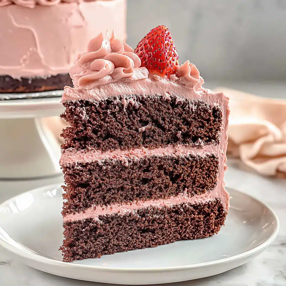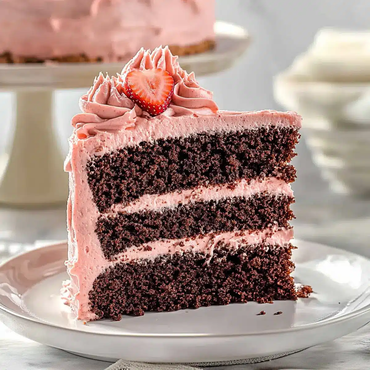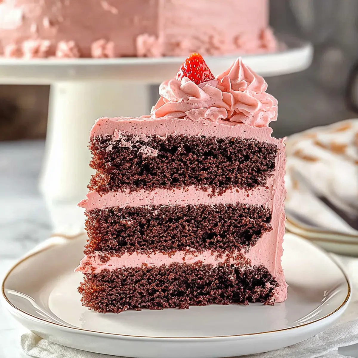Eye-Catching Presentation: The vibrant pink strawberry frosting not only adds a splash of color but also provides a delicious contrast to the deep chocolate layers, making it perfect for special occasions.