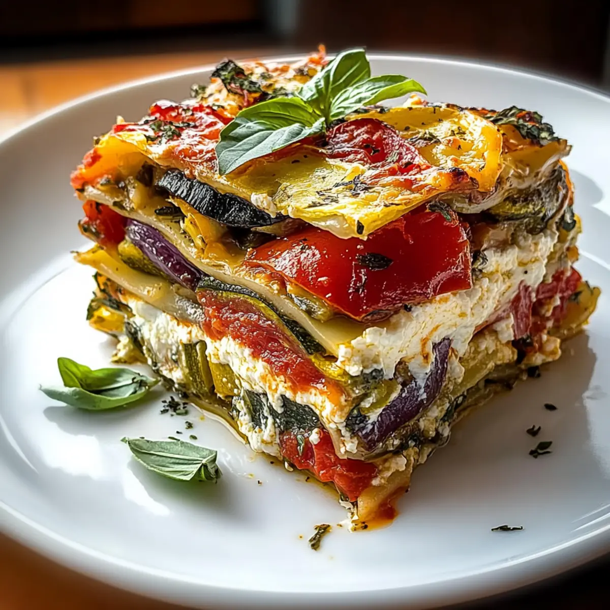 Layered Mediterranean Vegetable Lasagna with Creamy Ricotta Delight