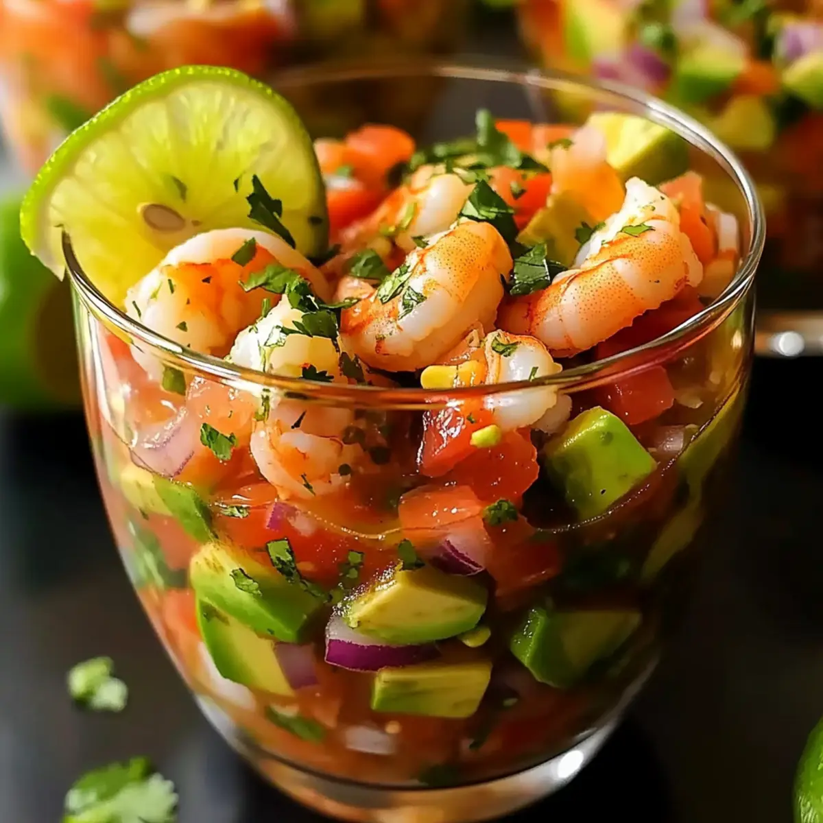 Vibrant Flavor Fusion: This Zesty Mexican Shrimp Cocktail brings together fresh shrimp, creamy avocado, and zesty lime, creating an explosion of taste in every bite.