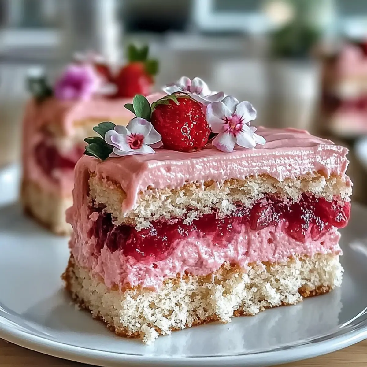 - Decorate with edible flowers and chill the cake for at least 30 minutes before slicing.
