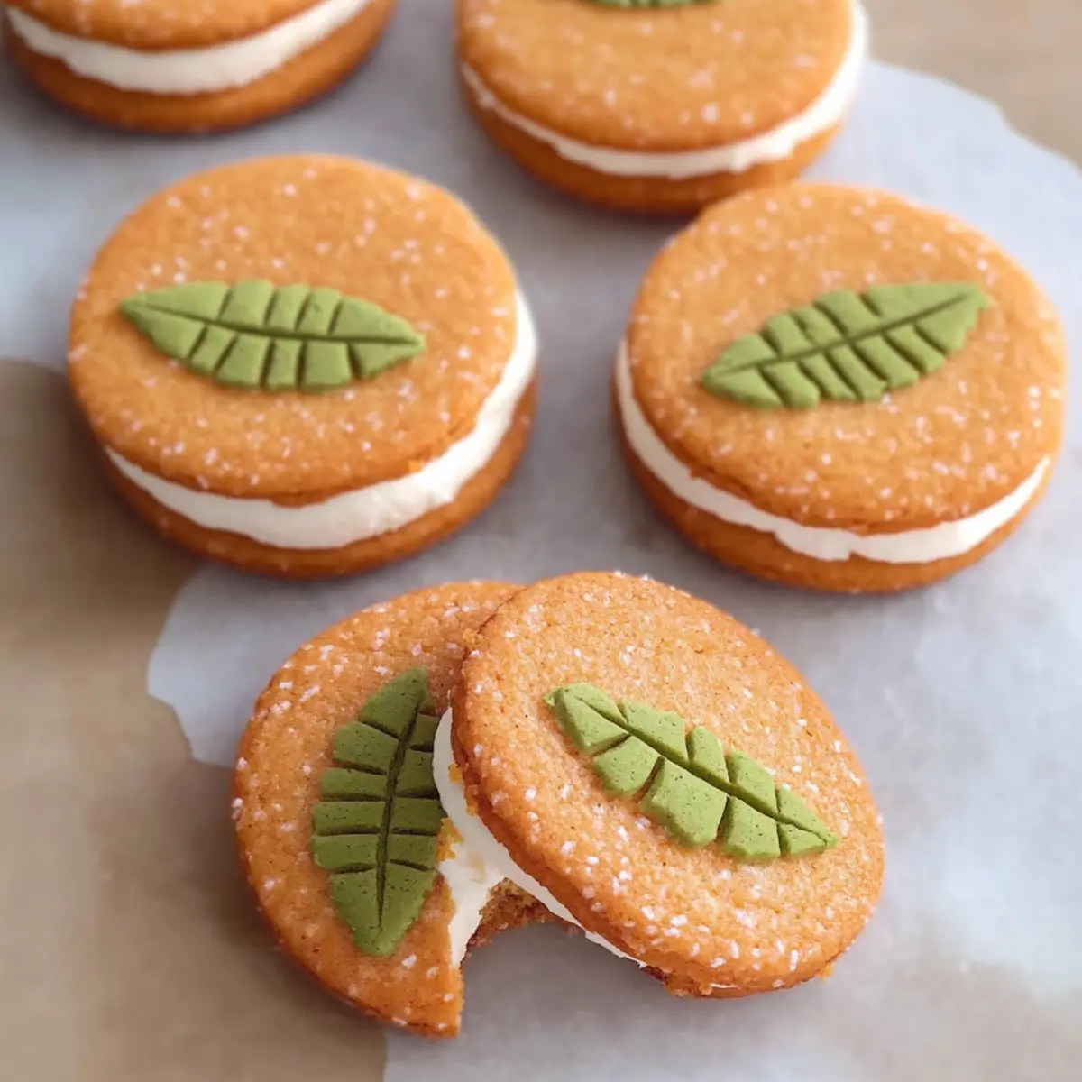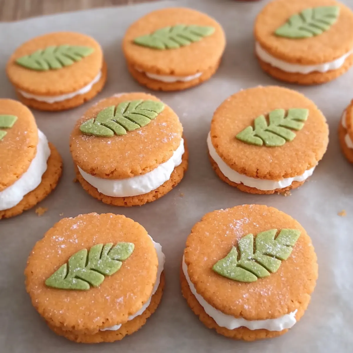 - Spread or pipe a generous amount of the vanilla buttercream filling onto half of the cooled orange cookies and top with the matched halves to create delightful sandwich cookies.