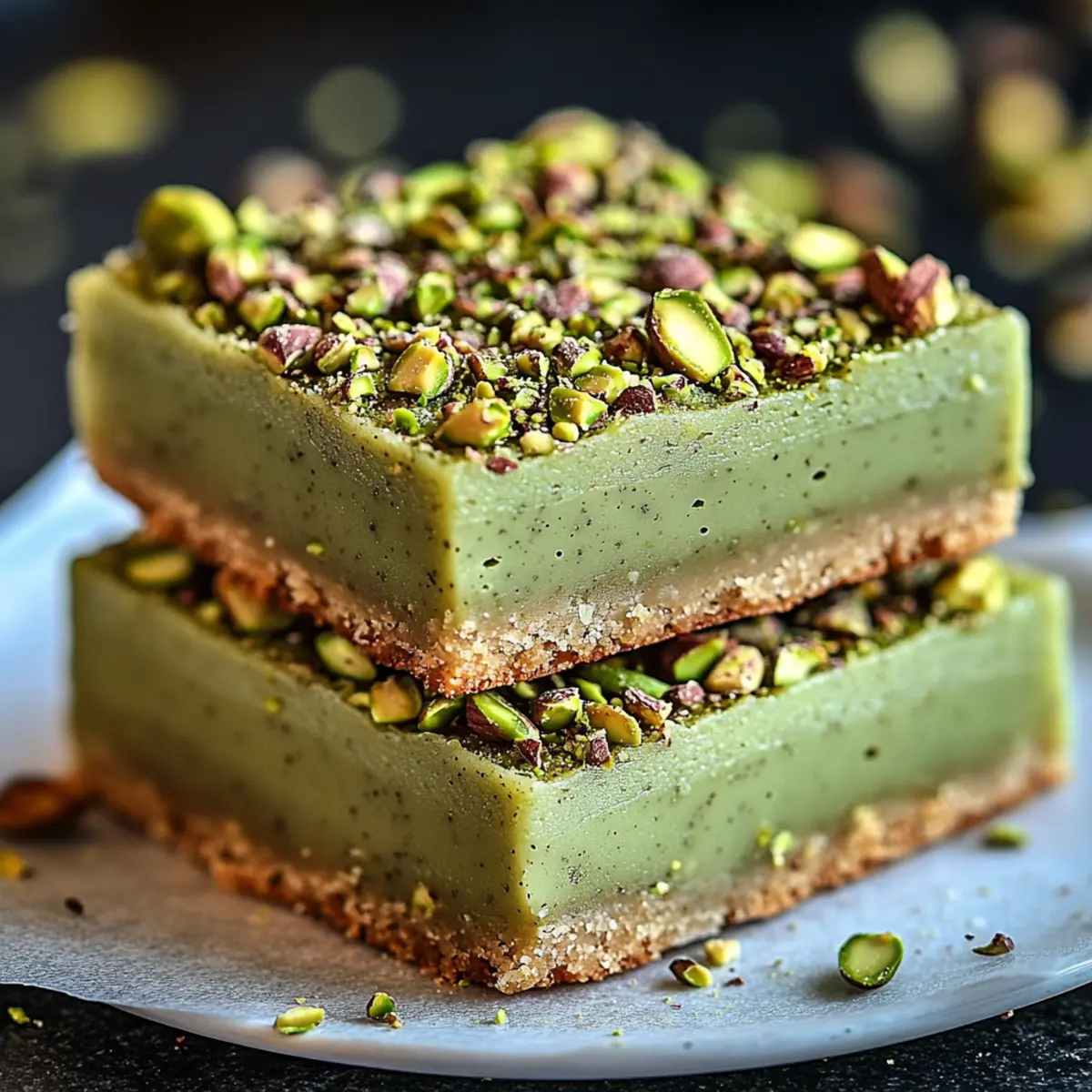 These Pistachio Pudding Sugar Cookie Bars are a fantastic choice for meal prep enthusiasts! You can prepare the cookie batter up to 24 hours in advance: simply mix the wet and dry ingredients separately, and combine them just before baking to ensure freshness. Additionally, baked bars can be stored in an airtight container at room temperature for up to 4 days or refrigerated for up to a week; just make sure they cool completely before sealing to maintain that soft texture. When ready to serve, glaze them and top with chopped pistachios for that fresh, delightful finish. This way, you’ll have a sweet treat ready to impress your guests with minimal effort!