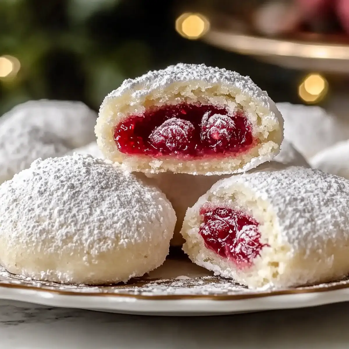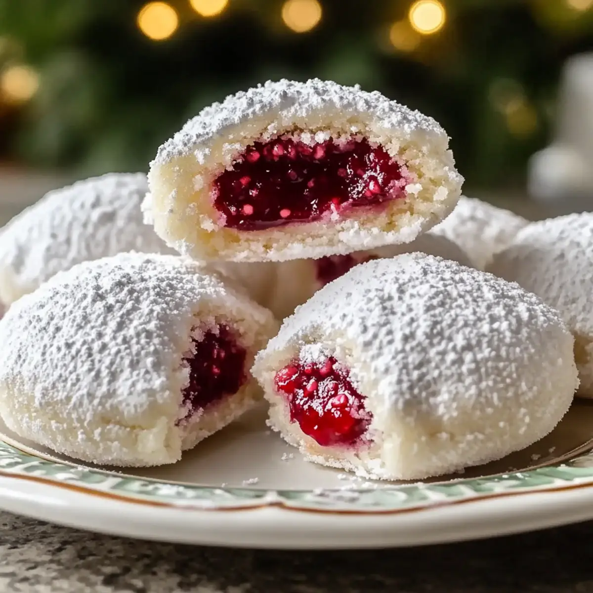 Raspberry-Filled Almond Snow Cookies for a Cozy Dessert Delight