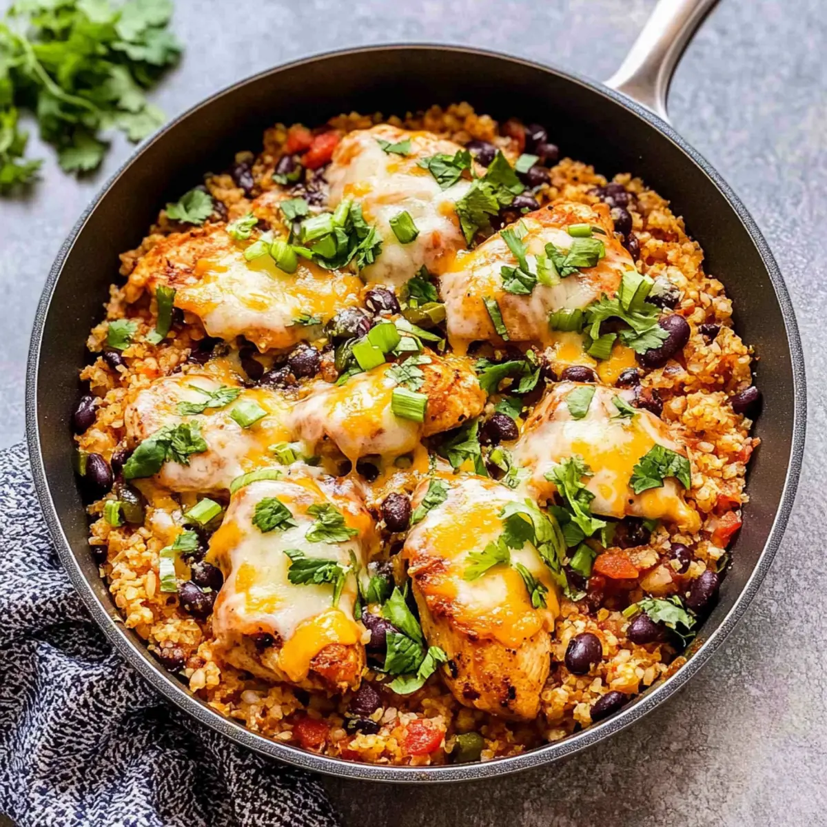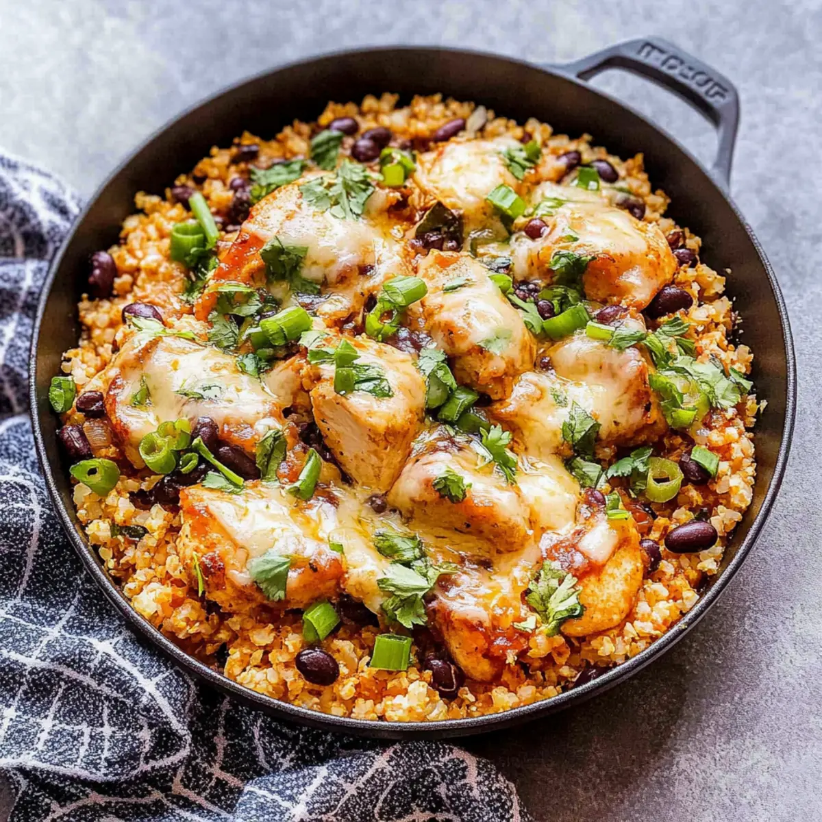 Definitely! This Salsa Chicken and Cauliflower Rice Skillet is inherently gluten-free and can be made dairy-free by swapping out the shredded cheese for a vegan alternative. Always check ingredient labels for allergens, and if you’re serving to pets, consult your vet, as ingredients like garlic and certain spices may not be pet-friendly.