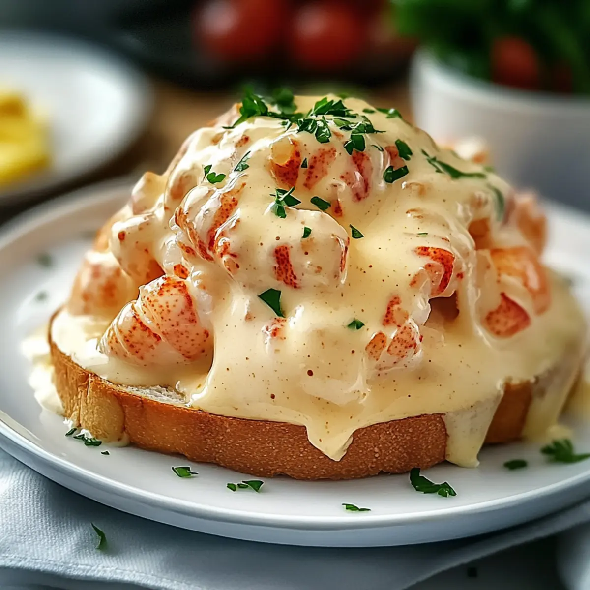 Finally, serve your decadent Lobster Newburg over buttered toast or puff pastry shells for an elegant touch. Garnish with freshly chopped parsley to add a pop of color and an aromatic finish. Your rich, creamy creation is now ready to impress, turning any meal into a special occasion.