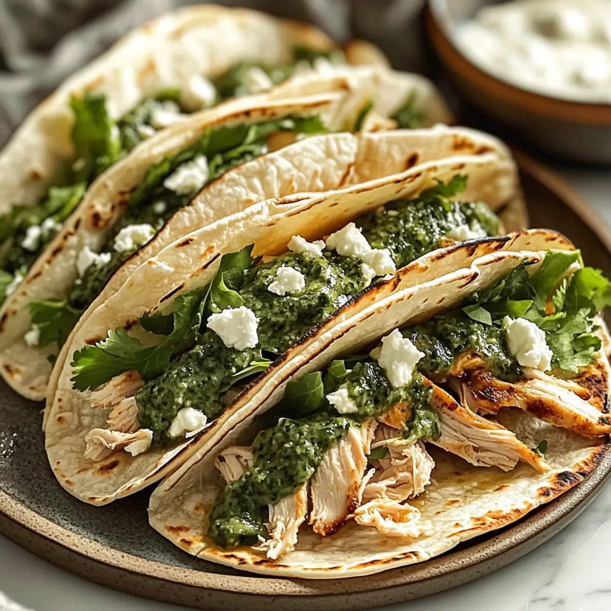 Shredded Chicken Tacos with Creamy Chimichurri Sauce Bliss