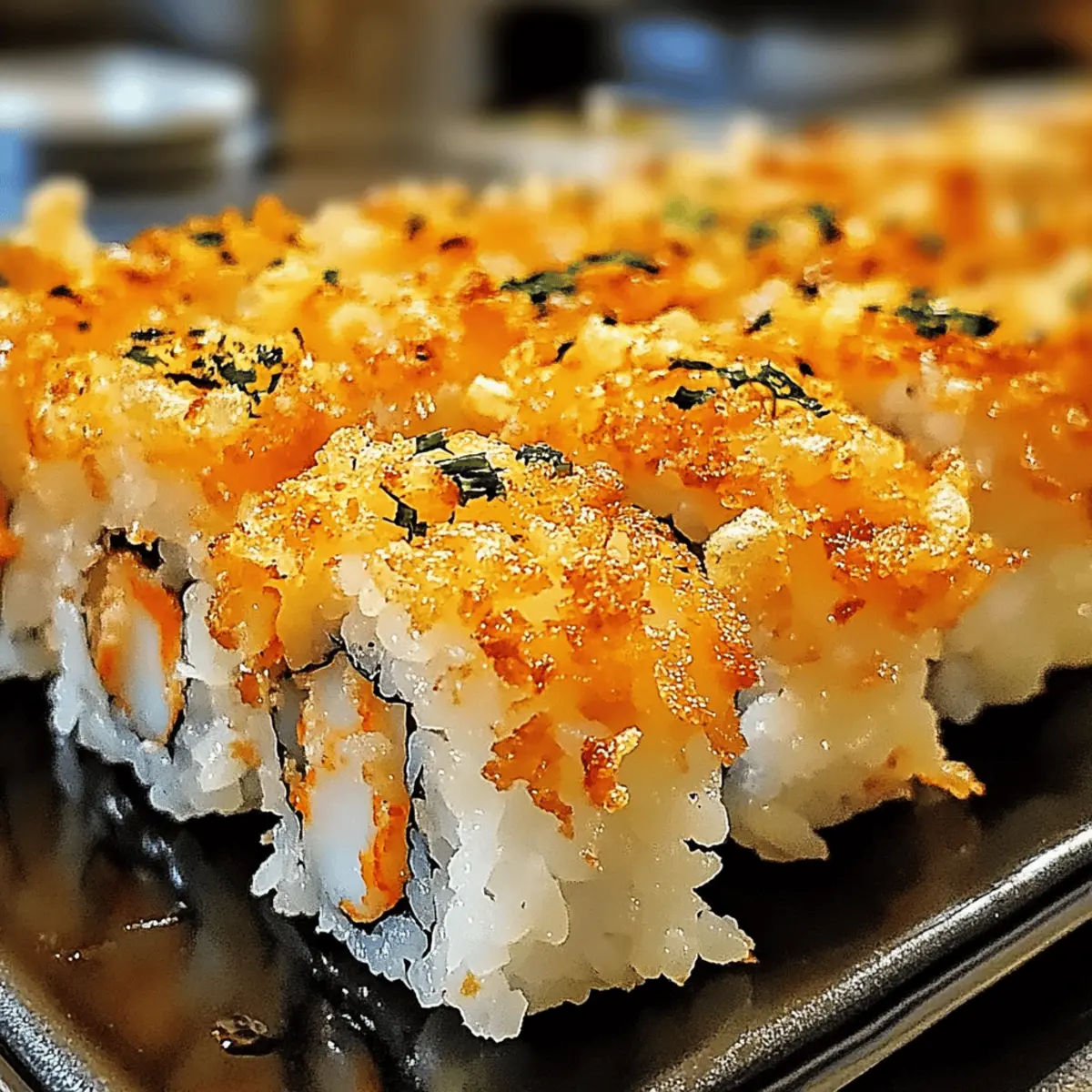 Nori Crunch: Tear up some nori sheets and sprinkle them on top before baking. This traditional touch not only enhances the aesthetic but also adds that authentic sushi flavor to each bite!