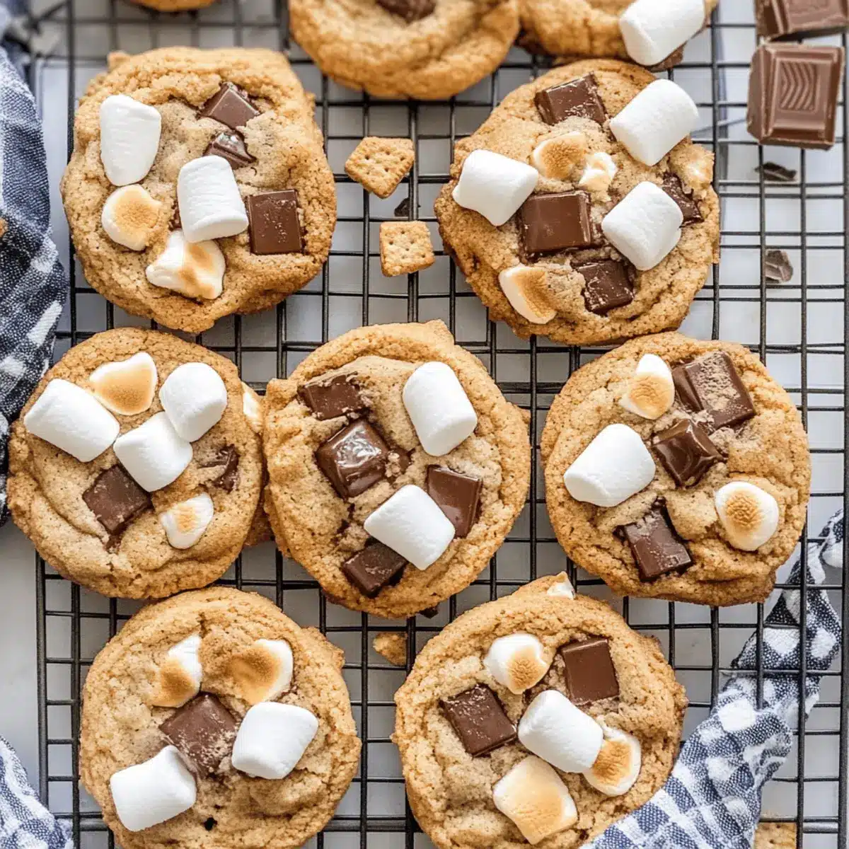 Return the cookies to the oven for an additional 1-2 minutes. Watch closely as they bake until the marshmallows are toasted and everything is fully set. If desired, turn on the broiler for a very brief moment to achieve an even more toasted effect on those marshmallows, but keep a vigilant eye to prevent burning.