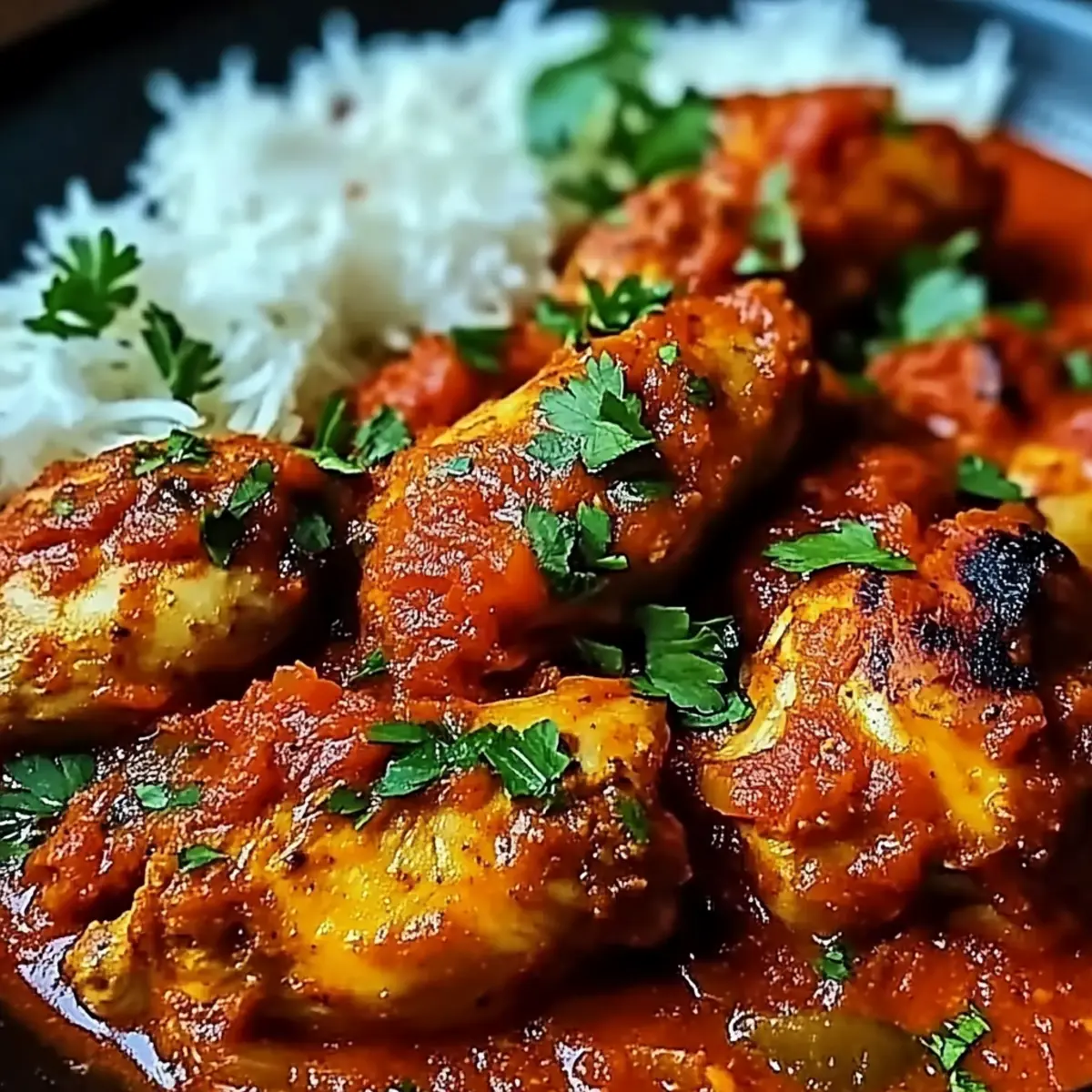 - Tomato Mixture: Stir in crushed tomatoes and tomato paste, coat the chicken thoroughly.