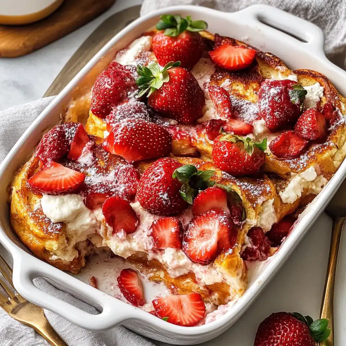 As the sun peeks through the kitchen window, I can almost hear the whispers of comfort wafting through the air—a promise of cozy mornings and lazy brunches. This Baked Strawberries and Cream French Toast is my secret weapon for those busy weekends or special gatherings that call for something truly delightful. It’s effortlessly make-ahead, allowing you to savor the moments instead of stressing in the kitchen. Plus, this recipe is a hit with both kids and adults alike, making it the ultimate crowd-pleaser! Imagine golden, fluffy bread soaked in a vanilla custard, lovingly layered with ripe, juicy strawberries. Sounds irresistible, doesn’t it? So, are you ready to whip up a slice of nostalgia? Let’s dive into this delightful creation together!