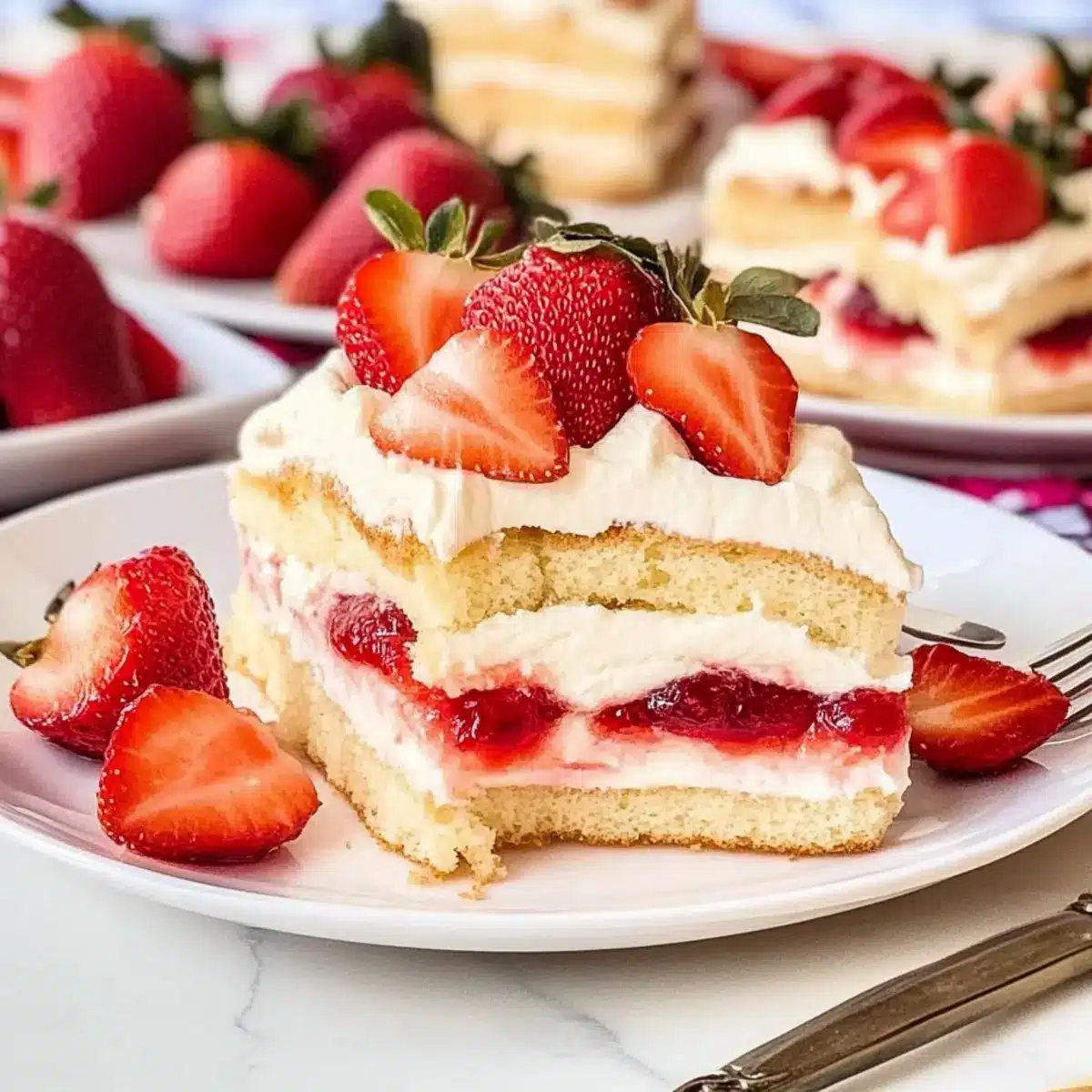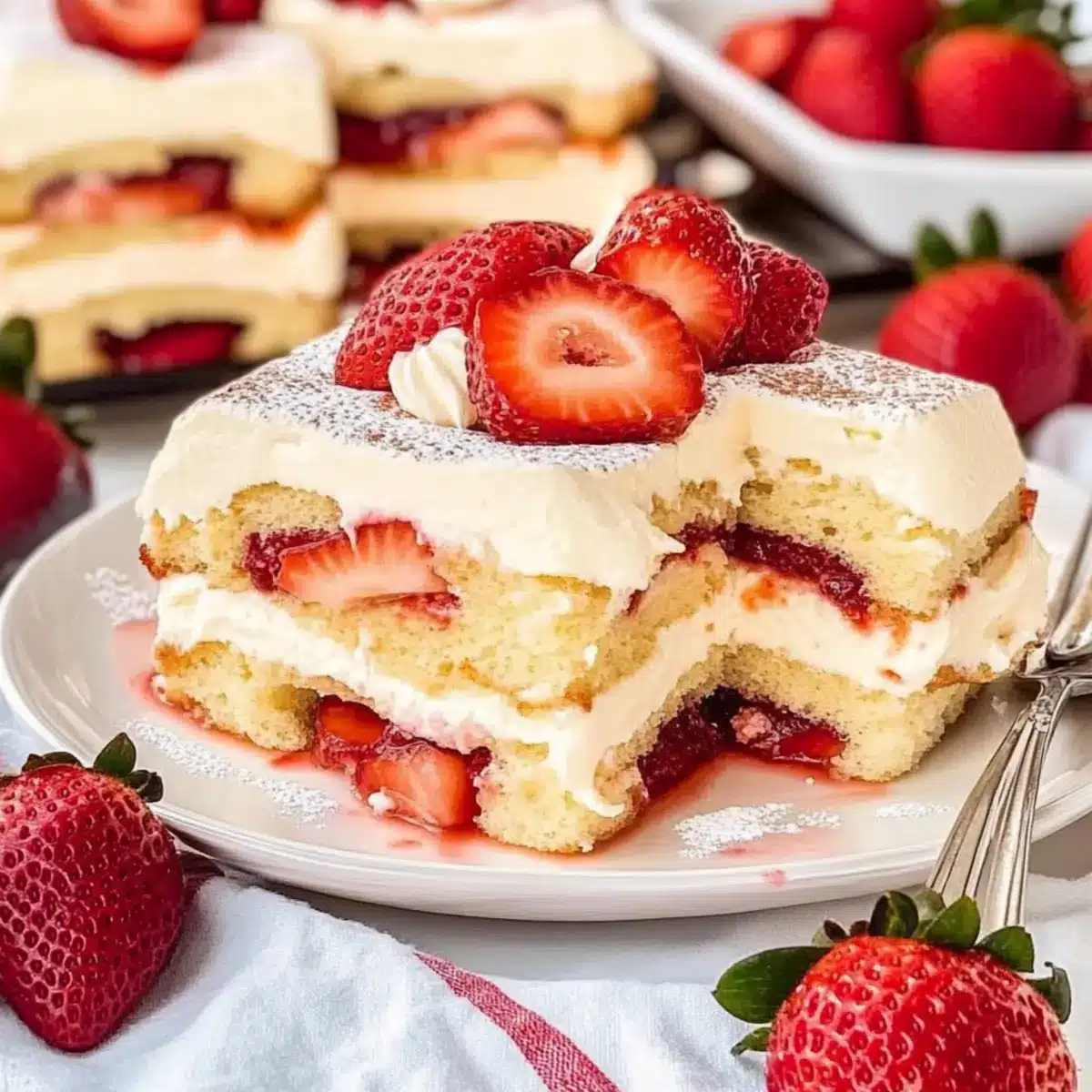 • Ripe Strawberries: Choose the sweetest, ripest strawberries for this dessert; they are the stars that shine through the layers!