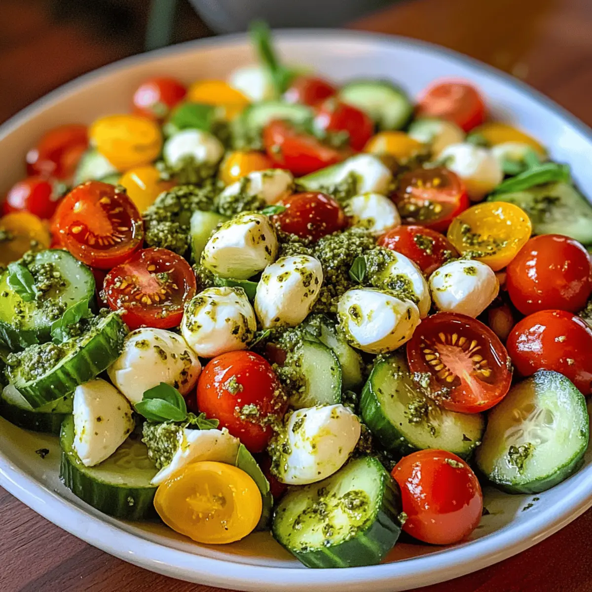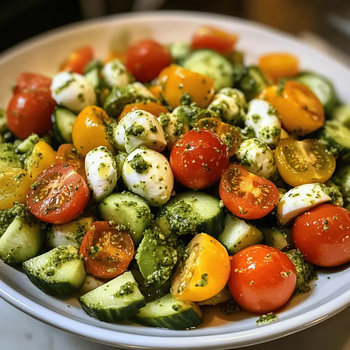 Tomato Cucumber Avocado Salad with Mozzarella and Basil Pesto Recipe FAQs