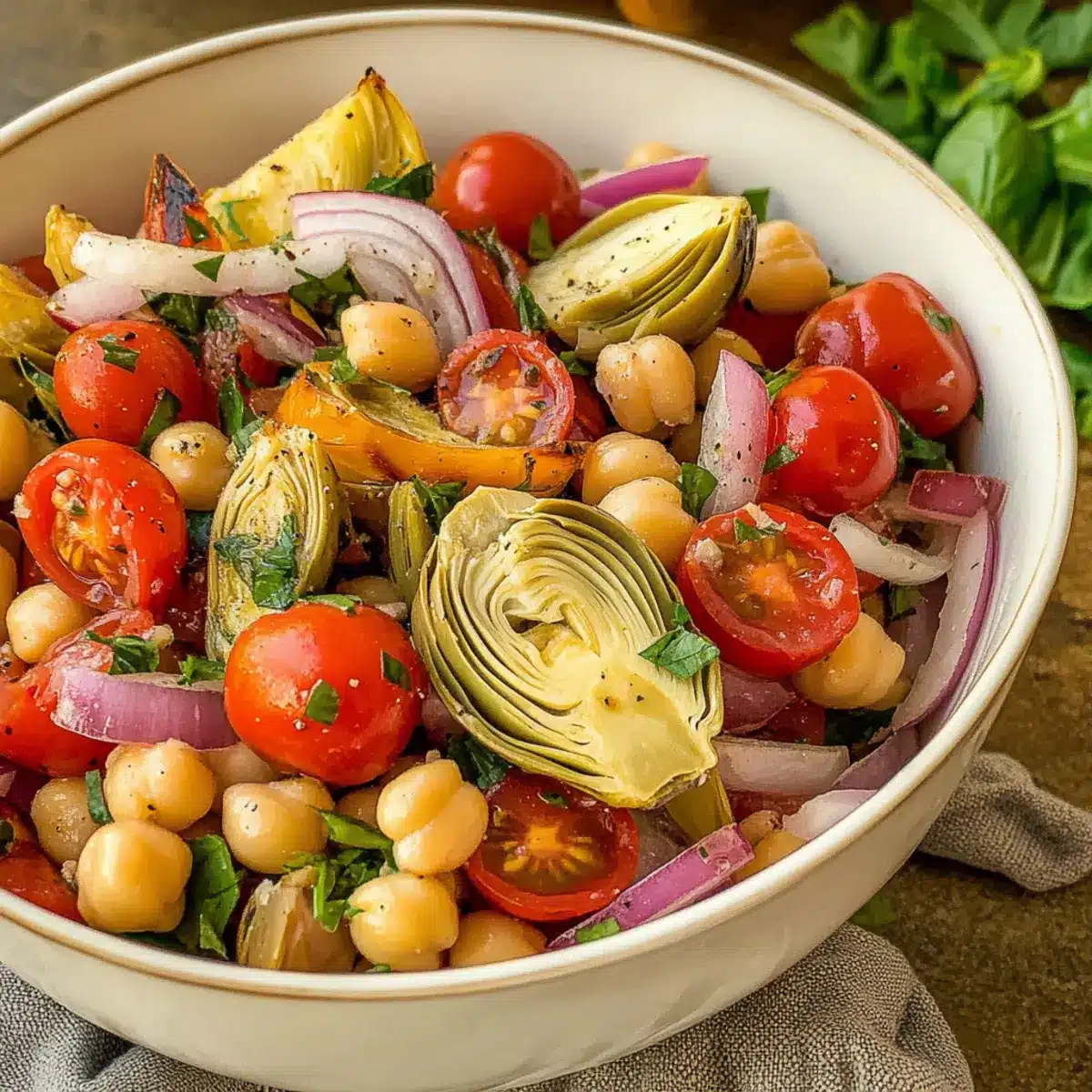 Very! If you have allergies or dietary restrictions, you can easily customize the Tuscan Artichoke Tomato Salad. For instance, if you’re allergic to chickpeas, you could substitute them with diced avocado or lentils for added heartiness. Always double-check your dressing ingredients to ensure they don’t contain any allergens as well.